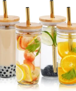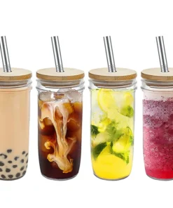 【SAFE AND RELIABLE MATERIAL】 The bubble tea cup is made of borosilicate glass material, which can be used safely for a long time, this glass cup withstand temperature changes from -55°C to 100°C; the bamboo can lid is made of bamboo material, which is safe Reliable
